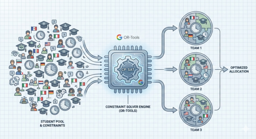 Optimizing team assignment. Constraint optimisation tool to find the optimal solution in a many-constraint system.